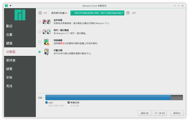 然後最近不小心看到 Manjaro 這個發行版感覺不錯就來試了